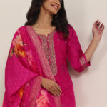 Be the first to review “Pink Woven Design Silk Blend Straight Set”